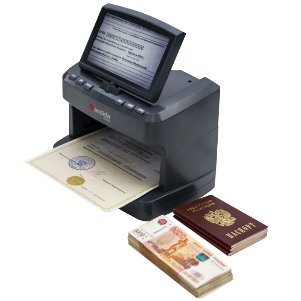 Многофункциональный просмотровый детектор Cassida 2300 Series разработан для комплексного анализа защитных признаков денежных знаков, акцизных и федеральных специальных марок и документов с полиграфической защитой.