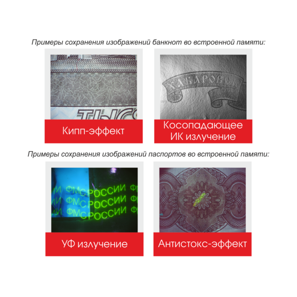 Позволяют проводить углубленный анализ подлинности документов и ценных бумаг на высочайшем уровне. Универсальный просмотровый детектор Cassida MFD1 различает все виды защиты документов строгой отчетности, включая:
